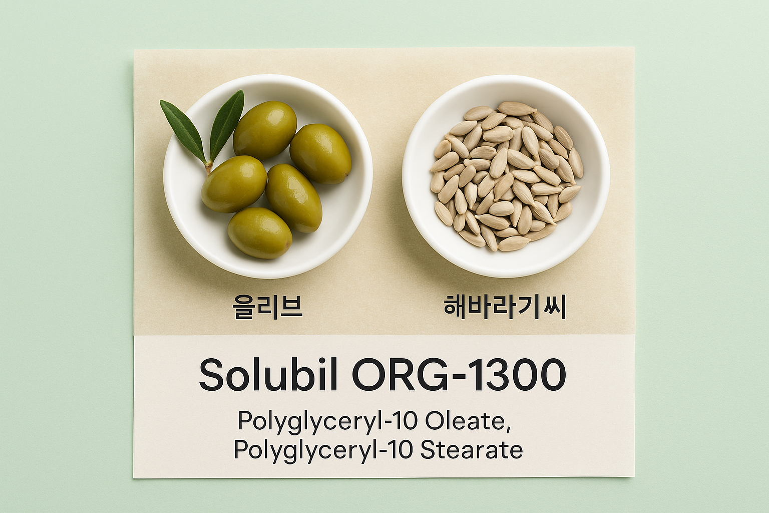 🌍 Solubil ORG-1300은 단순한 원료가 아니라, 뷰티 산업이 ‘지속가능성·클린뷰티’로 전환하는 시대적 흐름 속에서 태어난 과학의 결정체 인것이죠.