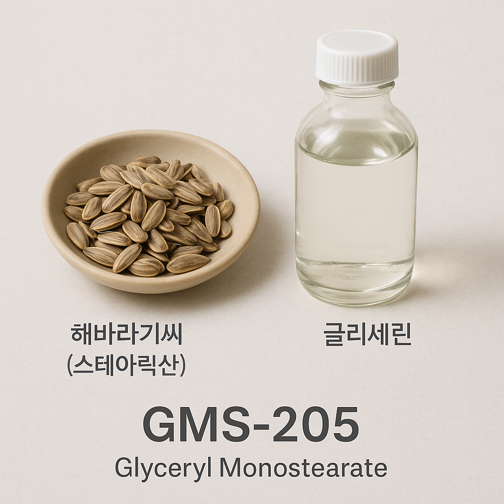 오늘은 화장품 유화 제형에서 빠지지 않는 스테디셀러 원료, 바로 GMS-205 (Glyceryl Monostearate 205) 에 대해 이야기해 보겠습니다. 🚀