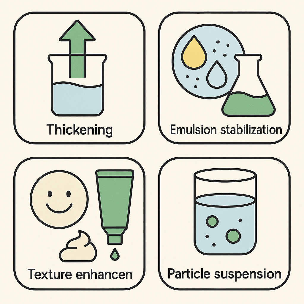 - 역할: 점증제(Thickener), 안정화제(Stabilizer), 서스펜션(Suspending agent)